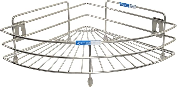 Kitchen Mart Stainless Steel Corner Rack Stand, 30 cm x 41.5 cm x 13 cm, 1-Piece, Silver